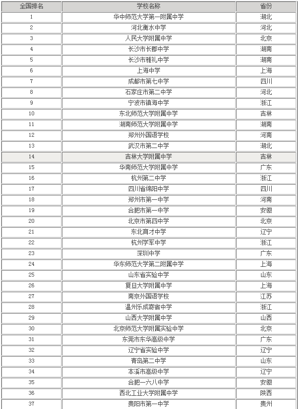 中国高中排名前20名