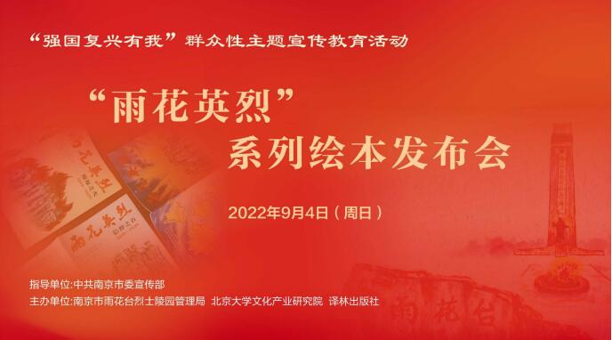 9月4日上午,由南京市委宣传部指导,南京市雨花台烈士陵园管理局、北京大学文化产业研究院、译林出版社联合主办,“中国南京红色在线”平台支持的“强国复兴有我”群众性主题宣传教育活动——“雨花英烈”系列绘本发布会在雨花台烈士陵园举行,中共南京市委常委、宣传部部长陈勇,中共中央党校教授、国家行政学院原副院长周文彰出席活动,共同为新书揭幕。