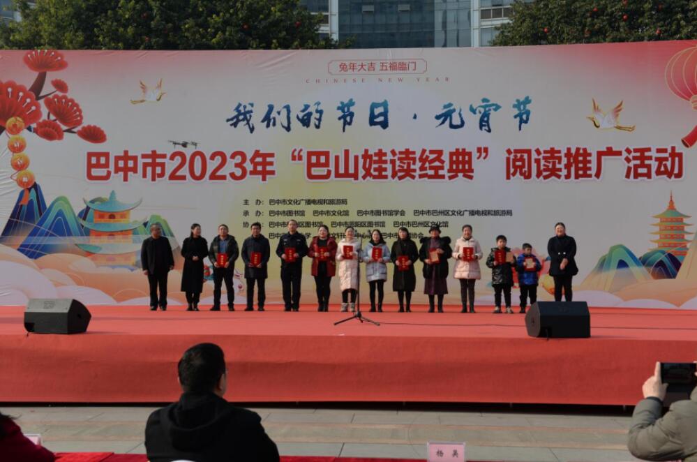 为弘扬中华优秀传统文化,丰富人民群众的精神文化生活,让广大群众深切感受到传统节日的独特魅力,2月3日,由巴中市文化广电旅游局主办,巴中市图书馆、文化馆、图书馆学会等单位承办,巴州区图书馆、恩阳区图书馆、巴中市朗诵协会协办的“巴中市2023年‘巴山娃读经典’系列阅读推广活动”启动仪式暨“我们的节日·元宵节”活动在巴中市新天地广场成功举行,3000余名市民参与此次活动。